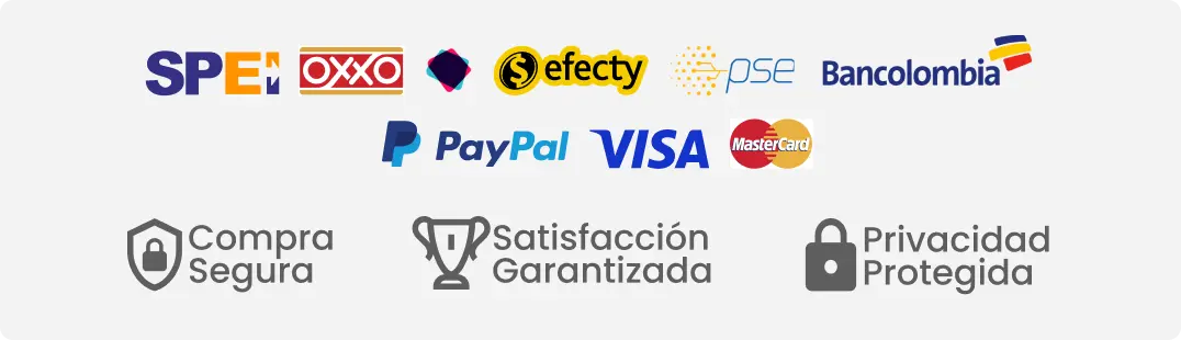 – PayPal, Transferencia bancaria (Brasil, Colombia, México, Unión Europea y Reino Unido)